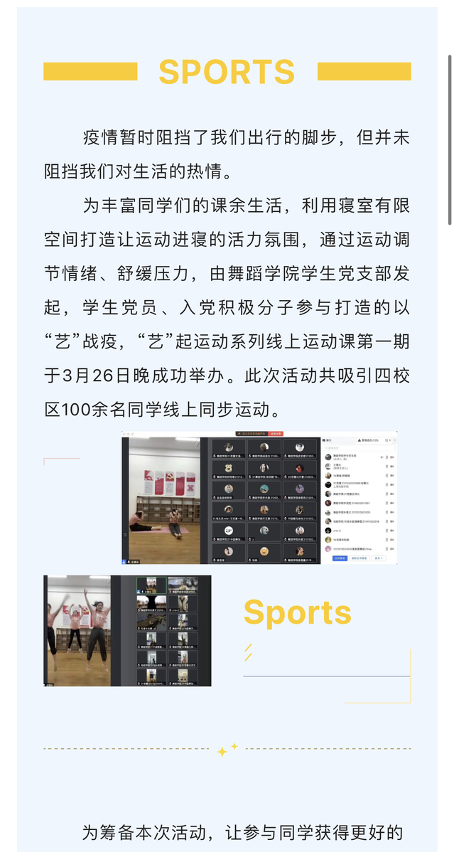 让运动入寝,让快乐入心--以“艺”战疫,“艺”起运动第一期线上运动课精彩回顾