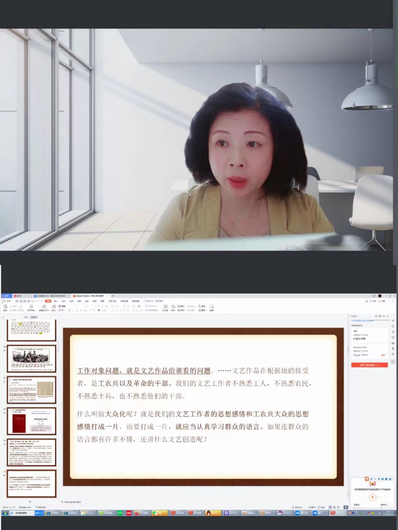 学习会初始,《当代舞蹈艺术研究》主编张素琴教授从历史发展角度,为大家讲解了延安文艺座谈会的召开背景、讲话主旨、对舞蹈的影响、意义及启示等,使得大家对于文艺为人民——这条从延安出发贯穿新中国文艺史的精神脉络有了更深刻理解。