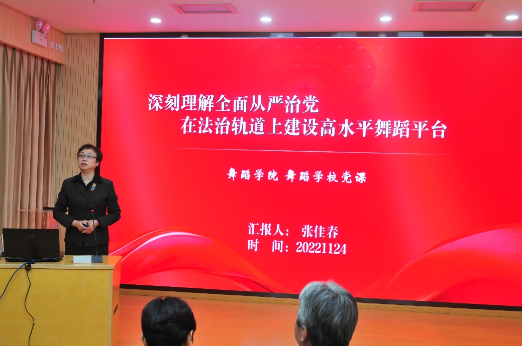 为深入学习宣传贯彻党的二十大精神,全面贯彻习近平新时代中国特色社会主义思想,弘扬伟大建党精神,切实加强党建引领,落实全面从严治党要求,近日,上海戏剧学院总会计师张佳春老师以《深刻理解全面从严治党,在法治轨道上建设高水平舞蹈平台》为主题,给舞蹈学院、附属舞蹈学校的全体教职工党员上了一堂党课。