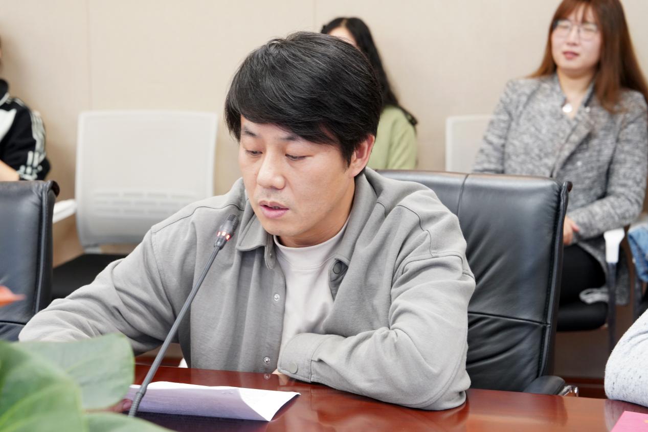 舞蹈学院党总支副书记徐辉从落实立德树人根本任务出发,谈论了思政工作如何有效开展并结合身边的案例讲述了学院师德师风建设成效。