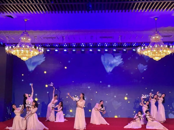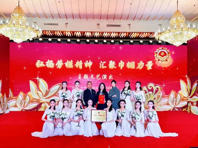 表彰大会结束当晚,全总女职工部、全总文工团联合举办了“弘扬劳模精神,汇聚巾帼力量”主题文艺演出,以文艺的形式致敬全国五一巾帼奖获得者,致敬全国广大女职工。这场演出从节目内容到形式都紧紧呼应表彰主题,通过文艺工作者和部分获奖代表台上互动、真情相映的方式,全方位展示女职工的劳动美和建功新时代的光荣与自豪。舞蹈学院十二名女生为巾帼标兵们献上了舞蹈《白玉兰的诉说》,美妙的舞姿不仅展现了舞院学子精湛的专业水准,更传递出舞蹈学院这个优秀集体的凝聚力。白玉兰是上海市的市花,象征着开路先锋、奋发向上的精神,同学们手持白玉兰,用最真挚而美好的情感翩翩起舞,为巾帼标兵们献礼的同时,在现场也充分感受到了催人奋进、勇毅前行的巾帼力量。