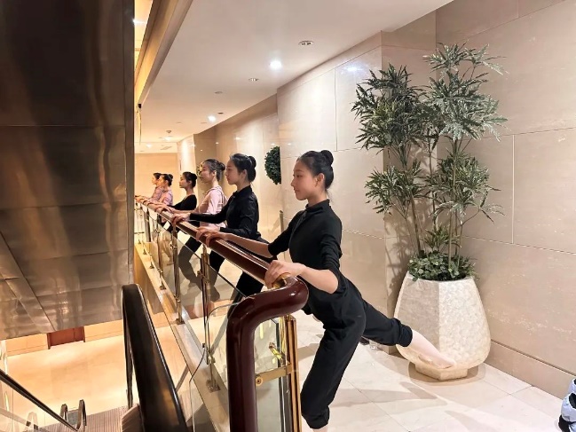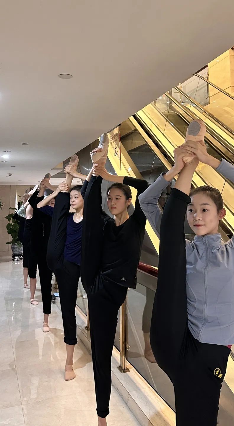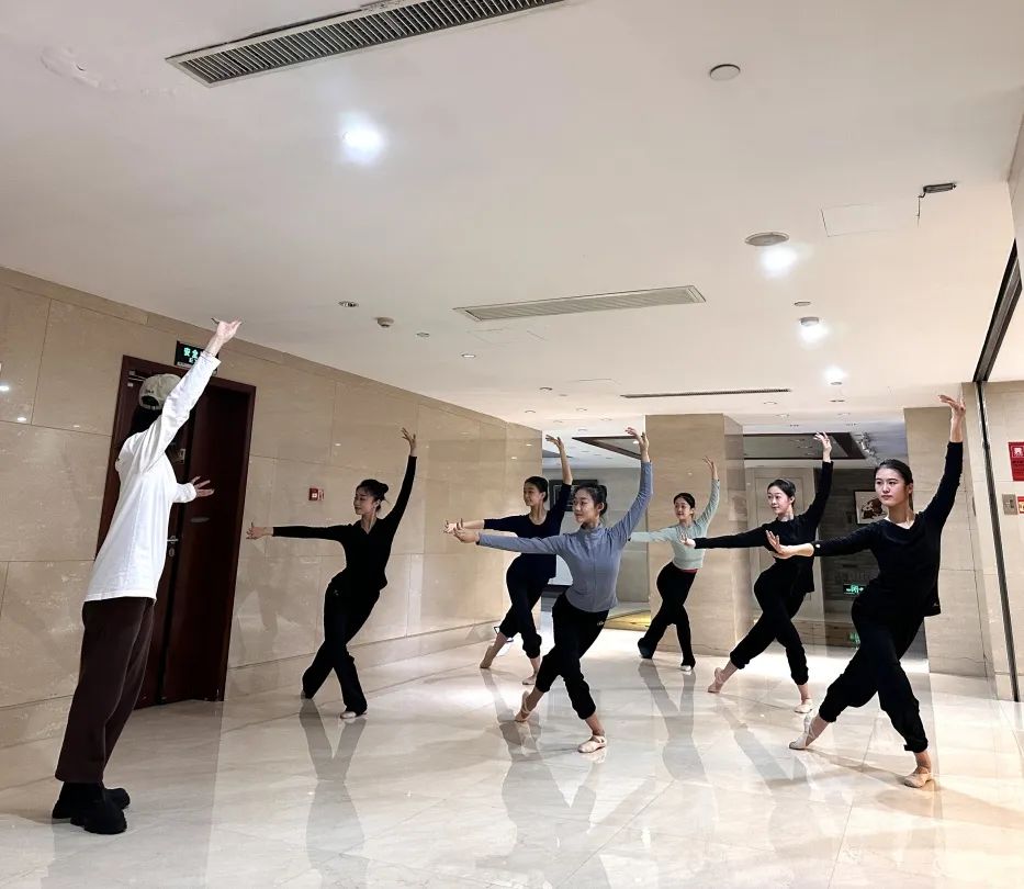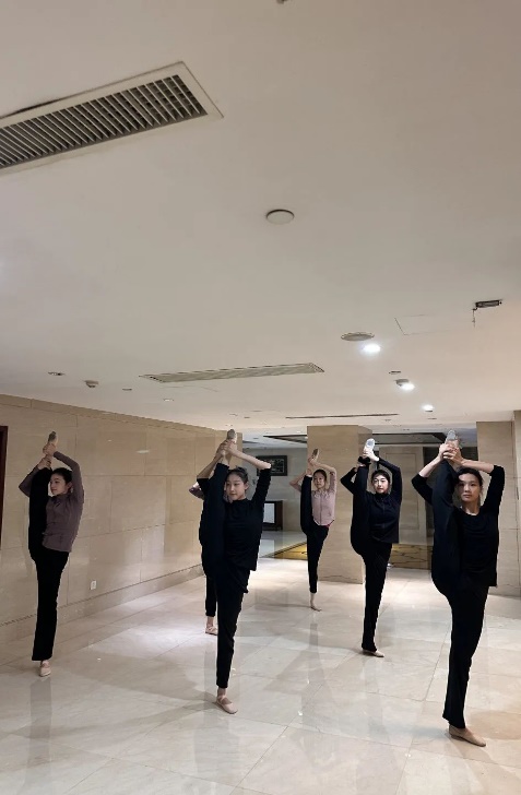3月的北京,春风和煦、阳光明媚。随着表彰大会的临近,舞蹈学院师生的心情也随之兴奋起来。为了能够更加出色地展示舞蹈学院这个巾帼集体的风采,刚到驻地,毕莹老师便带着同学们开始了热身、排练,走廊的扶手此刻成为了她们的把杆,大厅的空地则成为她们的排练厅。