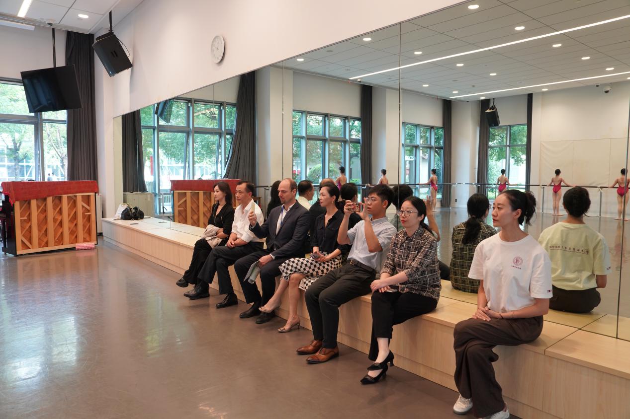 随后,在舞蹈学院副院长周蓓、党总支副书记徐辉带领下,洋风领事一行走进舞蹈学院的课堂进行了观摩,周蓓副院长对于学院的教学情况、课程设置、培养目标等方面作了介绍。