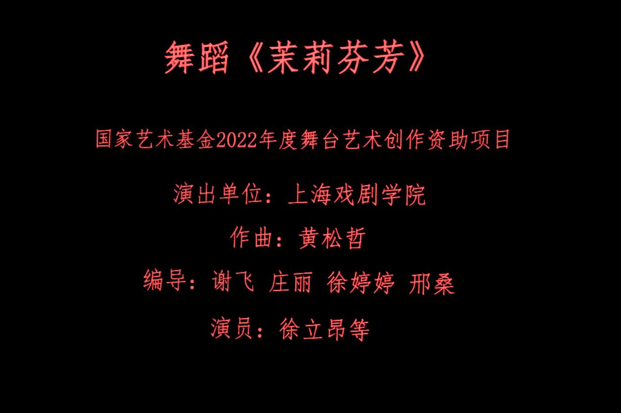 2023年12月31日,“为人民绽放”——国家艺术基金设立10周年优秀小型节目展演在中央歌剧院剧场举行。国家艺术基金管理中心从获得国家艺术基金资助的舞台艺术创作项目和青年艺术创作人才项目中,精选了一批书写伟大时代、讴歌奋斗人生、刻画最美人物的节目,组织了以“文艺的百花园永远为人民绽放”为主题的展演活动。上海戏剧学院舞蹈学院原创作品《茉莉芬芳》受邀参加了该展演。
