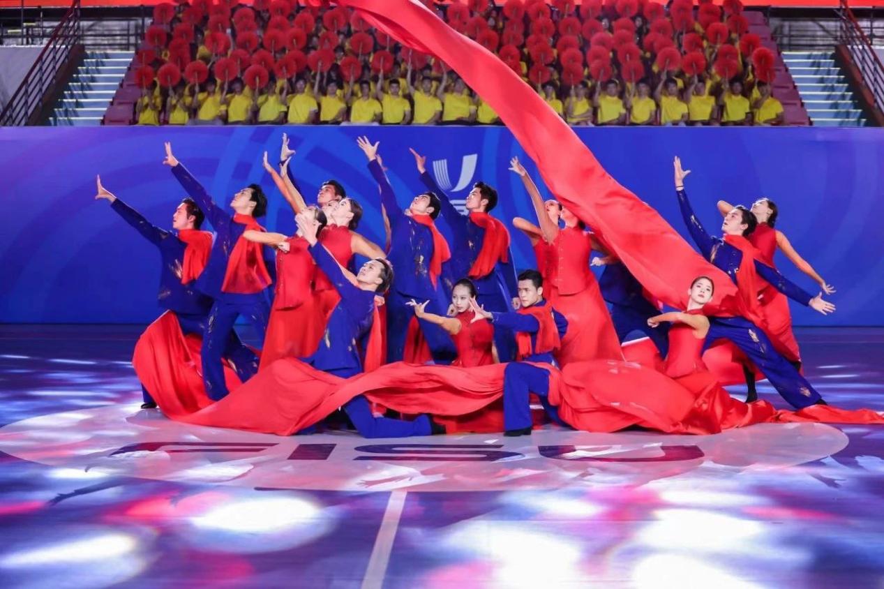舞蹈学院舞蹈表演(国标舞)2022级师生受邀参与开幕式演出,表演舞蹈《黄河》。