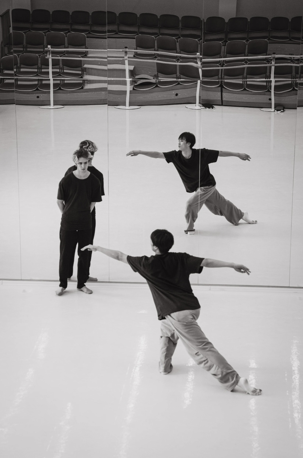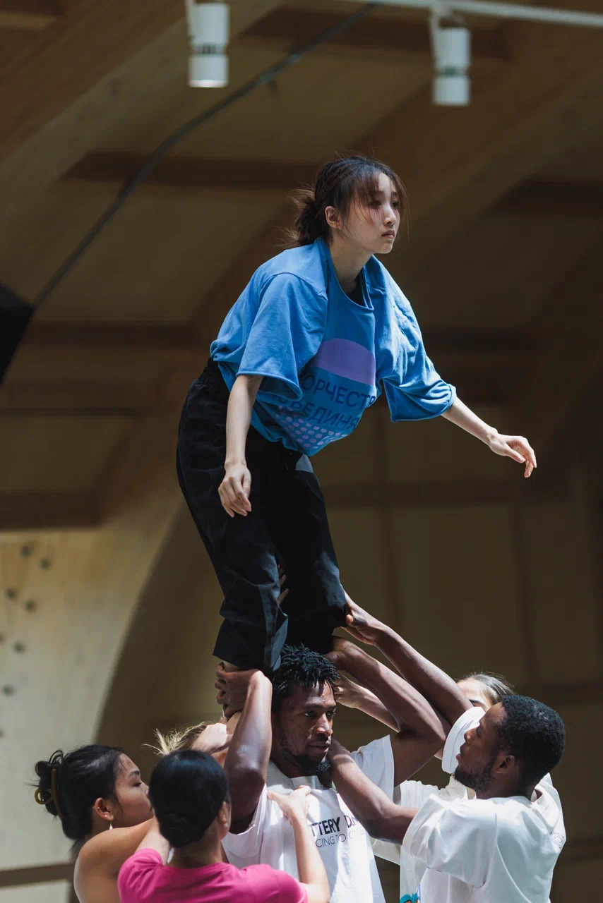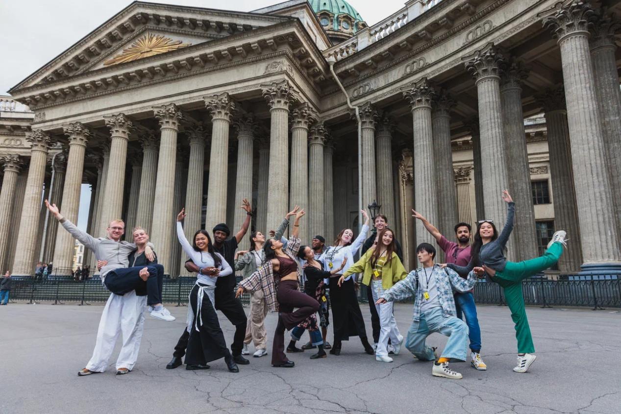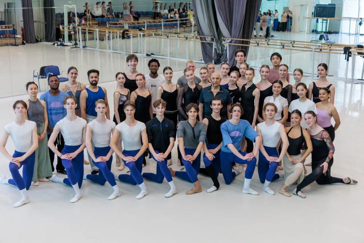 作为本次活动中唯一来自中国专业舞蹈院校的学生,我们既感到荣幸又充满挑战。初入陌生的排练厅,面对不同的训练体系、节奏分明的俄语指令,以及来自世界各国的顶尖舞者,压力不言而喻。然而,当音乐响起、身体随之律动,语言的隔阂自然消融——那些无需言传的艺术指令,早已在肢体的默契互动中自然达成。原来,身体的共通性,比任何语言都更为直接和纯粹。