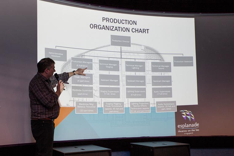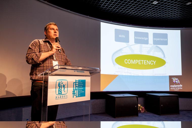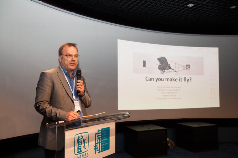 会议期间,OISTAT技术委员会前任主席Ivo Kersmaekers代表全体技术委员会成员做主题性发言。他指出“剧场技术教育”一直以来都是技术委员会最重要的宗旨,Ivo介绍了剧场技术教育事业上所做出的贡献——剧场信息资料库、剧目制作快捷模板、剧目制作风险评估、制作成本核算形式、国际标准项目和剧目创新发明奖;加拿大多伦多大学约克大学艺术学院戏剧专业副教授John Mayberry结合他任教的舞台技术管理专业的课程体系介绍了整个加拿大剧场技术教育模式。他认为,学校除了让学生在实践中学到更多的专业技能外,应允许学生在安全的环境下犯错,并让学生在体验的过程中看到错误的后果;不仅如此,让学生在校期间尝试先前毫无经验的岗位,期望学生在全新的领域发现问题、解决问题,并充分理解学校希望他们从中获得什么,也是约克大学所致力发展的方向。除了培养技能,加拿大剧场教育体系更为看重的是在培养过程中,能帮助学生成为有求知欲、专注、懂得如何成功且能随时随地处理新情况的人。中国舞台美术学会副会长张旭前瞻性地介绍了“魔幻剧场”与传统剧场的差异性,他认为“魔幻剧场”更具实用性、空间利用的灵活性、剧场的教学功能性。荷兰剧场高级咨询顾、阿姆斯特丹艺术学院教师Gerbrand Borgdortf则从学生的角度分析了荷兰剧场教育的不足,从与毕业走向剧场工作的学生探讨交流,分析了当下荷兰剧场技术教育的利与弊,他认为课程设置则应更偏向实际且细化种类,不应泛泛而谈。加拿大阿尔伯塔大学戏剧学院项目制作经理、原太阳马戏团技术总监Gerry van Hezewyk根据他本人在新加坡滨海艺术中心培训技术人员的经验,向与会嘉宾介绍了资源短缺、师资力量不足的滨海艺术中心培养技术人员时设置的课程体系。他认为,在没有剧场可供实践的情况下,短期的职业培训远远不足以培养优秀的技术人员,必须要把培训放在资源充足的国外获得实践经验。中国戏曲学院舞台美术系系主任李威教授则全面介绍国戏舞台美术工程设计与管理研究生课程体系,提出除常规课程以外,高校必须依托国外、国际高水准的舞美工程与管理机构、企业、剧院,强强联手进行课程教学,使学生参与整个制作流程,促使学生更好地将理论与实践相结合。斯坦福大学戏剧表演研究系、灯光设计师Michael Ramsaur教授则站在灯光设计师的角度分析了他们对剧场技术工作者的要求,从而进一步探讨如何教育一名优秀的灯光技术工作者;国际舞美组织荷兰中心技术委员会的Laura Van Haperen更为详细地介绍了舞台技术的发展对剧场技术人员提出的新使命;著名灯光设计师沙晓岚结合上海陆家嘴案例,向与会嘉宾分享了《当舞台灯光遇见建筑照明》;当选为新一任国际舞美组织技术委员会主席的助理教授Romana Boskovic介绍了自身参与的项目《Scentec——剧场技术人员及舞台监督培训课程体系的构建与实施》。她认为因根据不同水平的舞台技术人员设置不同的技术课程。