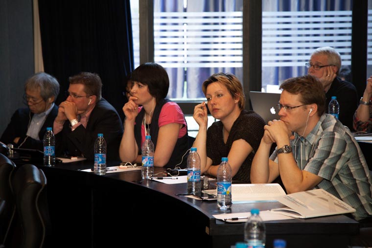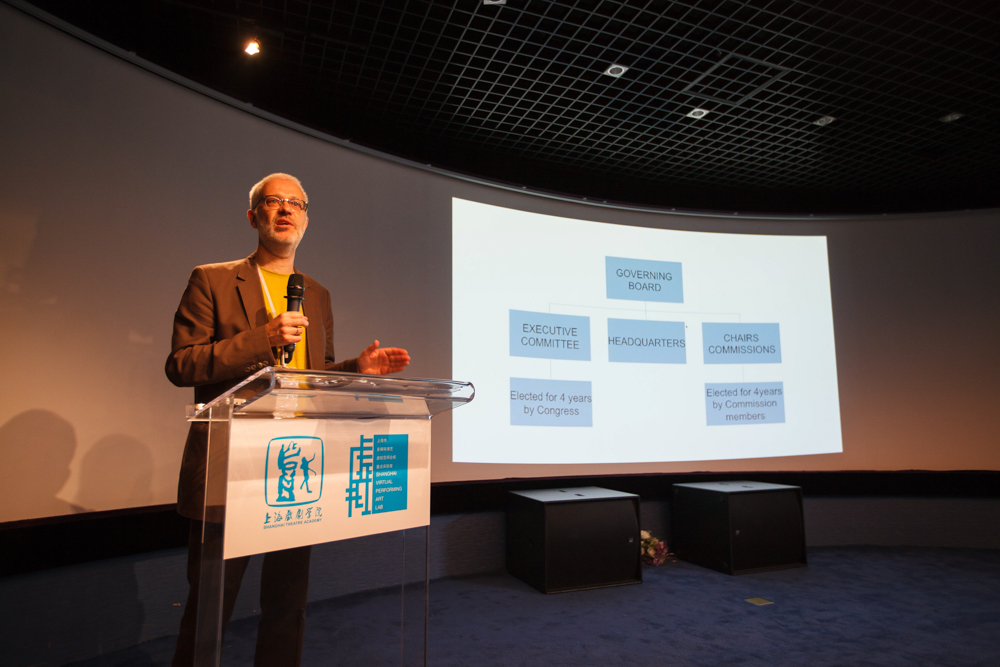 2014年4月10日-12日,国际舞美组织(以下简称OISTAT)技术委员会年会暨“剧场技术教育与课程体系”研讨会在上海戏剧学院召开。此次会议由国际舞美组织、中国舞美学会及上海戏剧学院联合主办,上海戏剧学院舞台美术系、上海市多媒体演艺虚拟空间合成重点实验室及上海舞美学会承办。来自中国舞美学会、中国戏曲学院、上海戏剧学院、上海舞美学会、美国剧场技术学会、加拿大剧场技术协会、台湾剧场技术协会、瑞典剧场技术协会、德国剧场技术协会、美国斯坦福大学、美国圣荷西州立大学、美国德克萨斯大学、孟加拉国卡达戏剧学院、加拿大约克大学、加拿大阿尔伯塔大学、埃及剧院舞台设计与技术中心、国际舞美组织俄罗斯、匈牙利、菲律宾、荷兰、捷克、塞尔维亚中心、广州大剧院、广州话剧团、上海文化广场等单位的16个国家和地区50余位国内外剧场技术专家、舞台美术工作者参加了会议。开幕式于4月10日上午在上海戏剧学院端钧剧场举行,上海戏剧学院舞台美术系副主任伊天夫主持,上海戏剧学院舞台美术系主任兼上海戏剧学院演艺中心主任王履玮代表韩生院长及上戏师生欢迎来自世界各地的专家。