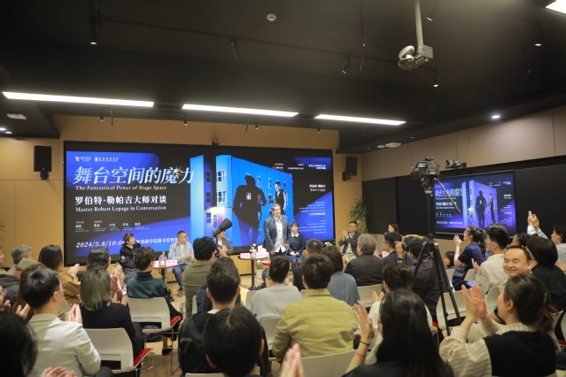 2024年5月8日上午,国际著名跨界艺术家、当代最具影响力的视觉剧场大师之一的罗伯特·勒帕吉,受邀在开云足球首页官网下载华山路校区为师生带来了一场主题为《舞台空间的魔力》的学术对谈。