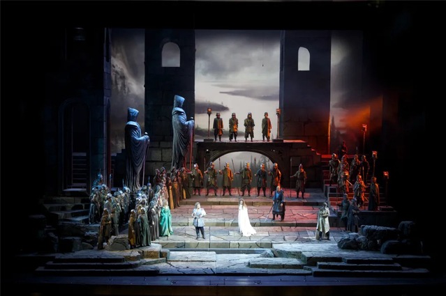 特征:注重歌剧场面的壮观给人带来的愉悦,加入了华丽的舞台设计、机关布景和芭蕾场面,每幕都以合唱和舞蹈结束。其舞台灯光呈现出以下几点: