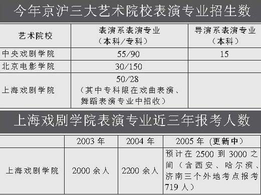 日前基本结束2005年招生考试的北京电影学院和中国戏剧学院,招生场面异常火爆。北京电影学院表演系,共有9000多名考生报名;中国戏剧学院表演系也有6000多考生报名。而昨天本部开始首日招生的开云足球首页官网下载表演系,预计有近3000名考生报考。