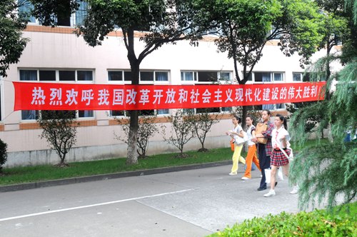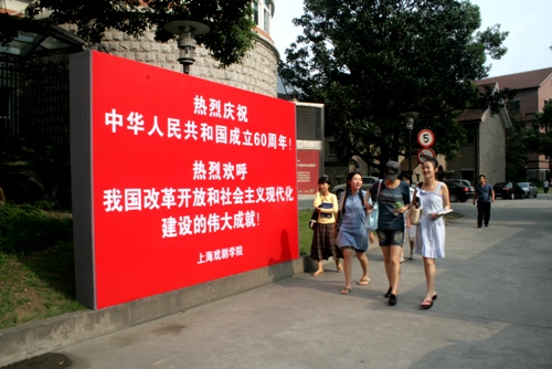 今天是中华人民共和国成立六十周年的喜庆日子,我校华山路、莲花路两校区分别张贴、悬挂起大幅庆祝标语,热烈庆祝伟大祖国六十周年国庆。(图文/小河、剑龙 编辑/雨田)