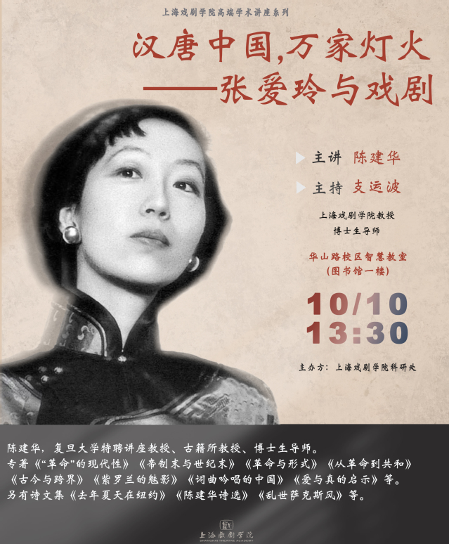 【高端学术系列讲座预告】陈建华:汉唐中国,万家灯火——张爱玲与戏剧