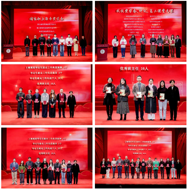 大会表彰了获得国家奖学金、上海市奖学金、校级奖学金,校级优秀集体与个人,“第二课堂之星”,毕业生就业工作典型案例、毕业生就业工作先进集体与个人,优秀班主任等荣誉的师生。校党委副书记胡敏,党委副书记、纪委书记周银娥,副院长刘庆,分别宣读表彰决定并为获奖师生代表颁奖。