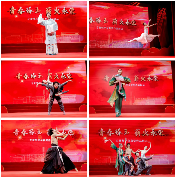 来自戏曲学院、舞蹈学院的专业奖学金获得者代表张祥群、裴天乐、付涵、陈凌峰、高禄茜、张博昊带来的专业展示《青春琢艺 薪火承荣》,以精湛的技艺和饱满的情感表现,赢得了现场的阵阵喝彩。