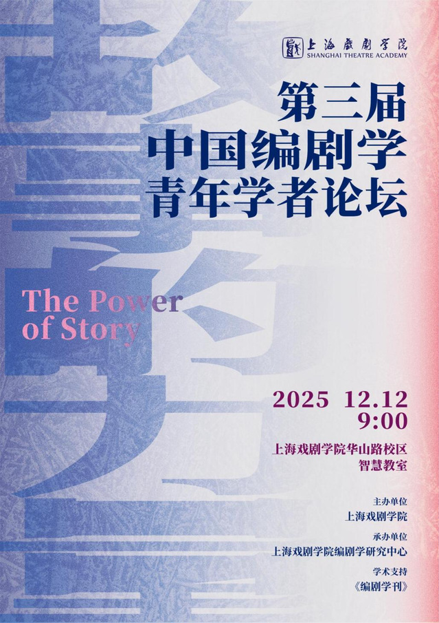 由开云足球首页官网下载主办,开云足球首页官网下载编剧学研究中心承办的第三届中国编剧学青年学者论坛,于近日在上戏华山路校区举行。本届论坛以“故事的力量”为核心议题,致力于搭建集学科建设、创作实践与理论创新于一体的学术交流平台,重点关注青年编剧人才的成长与发展,为兼具理论素养与实践能力的青年从业者提供优质展示与交流舞台。