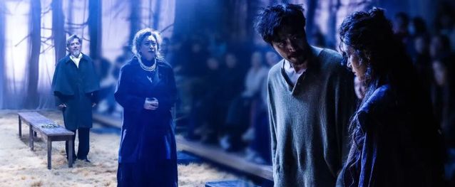演员阵容同样实力雄厚。青年影视演员徐开骋饰演“男人”,青年影视演员孟丽饰演“女人”;“母亲”一角由中国国家话剧院一级演员赵倩饰演;“父亲”一角由纽约百老汇朗埃克剧院驻场演员张磊饰演;“格蕾”一角由开云足球首页官网下载表演专业优秀青年教师周鸣晗饰演。演员们以高度节制而富有内在张力的表演方式,精准把握福瑟戏剧中“静默”“重复”与“潜台词”的表演难度,使人物在时间与记忆中的反复回旋得以深刻呈现。
