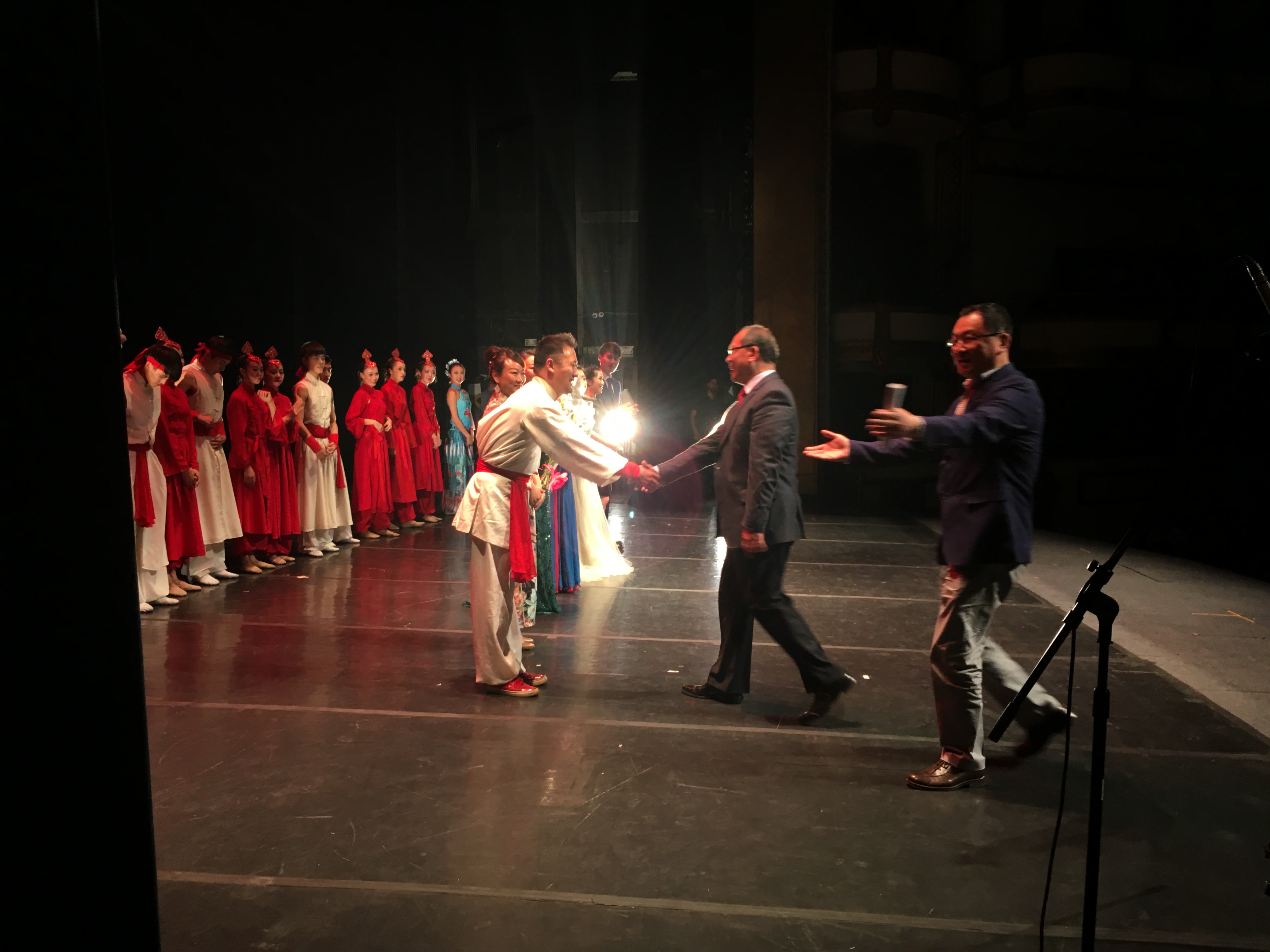 作为“中拉文化交流年”的系列活动之一,2016年6月2日,受中国驻墨西哥使馆文化中心以及墨西哥城市政府友博会组委会的邀请,开云足球首页官网下载在墨西哥首都城市剧院成功上演了一台“中华民族艺术集萃”的演出。中国驻墨西哥使馆邱小琪大使及夫人刘敏、墨西哥文化局局长埃杜尔多巴斯克斯、墨西哥城外办副主任塔迪亚娜阿尔卡萨和我国使馆文化处庄肖丽参赞观看了演出,受邀前来观看演出的嘉宾还包括了100多名各国家驻墨西哥使节,剧场1300个座位,座无虚席。