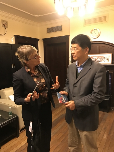 瑞典哥森堡大学佩特拉·弗兰克主任向杨院长介绍该学院的音乐作品