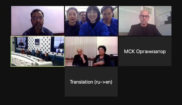 2021年11月30日晚21:00,应俄罗斯科布松戏剧艺术学院(Institute of Theatrical Arts named after J. Kobzon)邀请,我校导演系《白夜》负责老师常佩婷和学生导演、制作人等受邀在线参加由俄罗斯塔斯社(TACC)举办的第五届金砖国家戏剧节新闻发布会。国际交流中心主任张云蕾老师和工作人员楼嫣也一同在线出席了新闻发布会。