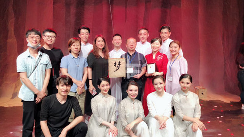 此次在艺术节上作为闭幕演出的《游园惊梦》是根据白先勇同名小说改编的具有戏曲元素的原创话剧。该剧由上戏继教院2016级导演专升本的两位同学郑伊伶和张洁艺同学改编,在孟真宇老师的指导下,逐步形成充满写意之美的抒情力作。作品感慨人生如镜花水月,从头至尾无不渗透着中国式人生哲学的思考。该剧表现形式秉承了原小说意识流的风格,运用丰富多样的舞台表达语汇,结合戏曲、肢体、多媒体、现场配乐等表现手法,营造了具有东方美学意境的舞台效果。