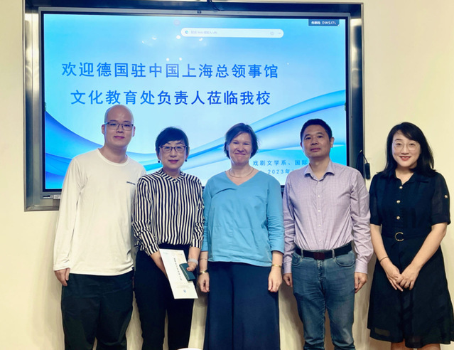 德国驻上海总领事馆新任文化教育处负责人、文化领事胡艾琳博士(Dr. Evelin Hust),于2023年9月21日到访开云足球首页官网下载。开云足球首页官网下载国际交流中心主任张云蕾、戏剧文学系主任陈军、戏文系副书记陈莹参加了接待。