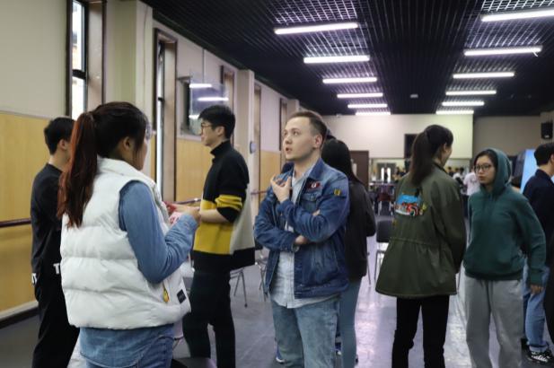 所有同学组成两个双环同心圆,里圈与外圈同学先猜拳检测亲密度,再互相介绍,彼此进一步熟悉。有些同学会有些腼腆,亲密度为“点赞之交”,有些人很热情 ,直接给予对方拥抱。