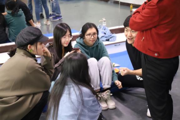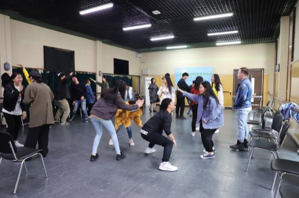 “魔镜”和“镜中人”两人一组,互相进行追随和模仿,以活跃气氛,舒展身体,拉近彼此间距离。环节中同学们的动作设计,有“赶校车”“上表演课”“刷抖音”等,还有人在活动中创意舞动起来。