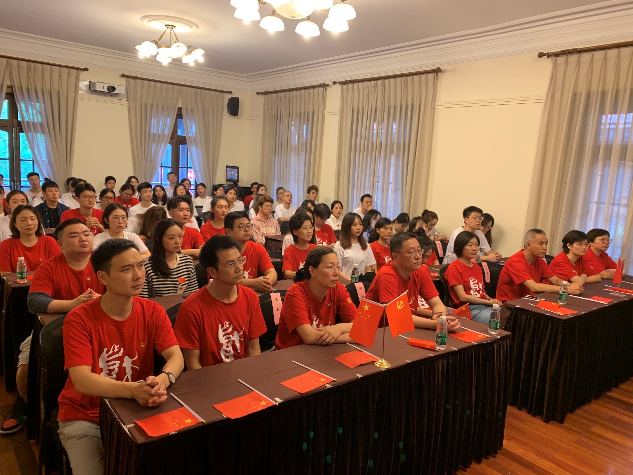 上海戏剧学院党委书记谢巍,党院办主任、宣传部部长、信息化办公室主任徐咏,组织部部长、教师工作部部长、人事处处长陈云,后勤保卫处处长陈昌富,宣传部副部长包立峰,党院办副主任刘俊,学工部副部长李冬梅,团委书记、学工部副部长徐晶,表演系党支部副书记朱锋,舞美系党支部副书记孙蕾以及各职能部门老师、辅导员,在华山路校区上戏实验剧院前厅参加了升旗仪式。