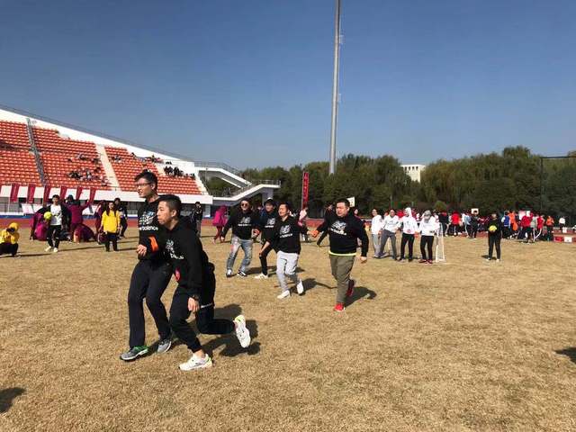 在袋鼠运瓜的项目中,老师们穿上袋鼠一样的背带布桶,靠双脚同时跳跃来转递西瓜球,大家一球接一球、一环扣一环地传递,紧密配合,在合作游戏中加强了凝聚力。在连体足球项目中所有选手以两人为一组,手腕用扁带绑在一起。我校所有到场的男老师都踊跃上阵,而女老师手拉手组成守门防卫,大家像连体兄弟一样配合移动,你踢我扫,你攻我守,赛事相当激烈。最终上戏队伍在团队的协助下以2:1的成绩领先进入第二轮的比拼。通过参加活动大家深刻感受到团队与合作、挑战与超越、担当与奉献对团队建设和个人职业成长的重要意义。