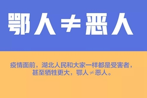 诚然,武汉市确实被“封城”,湖北确实是重点疫区,这是人们根据科学、理性得出的结论。我们应当支持并且遵守不同地方的不同规定。但是,这不代表我们要歧视我们见到的武汉人或者在网上看到的湖北人。对于患者,疑似病例,我们也应当用一种理性的心态对待,而不是偏见和歧视。
