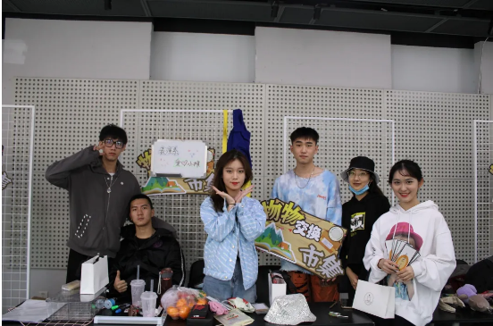 戏曲学院的小伙伴们,一齐身着STA卫衣,在集市中成了一道吸引眼球的风景线。他们不仅带来很多生活小物、零食等物件,还化身顾客代表,带着同学的兑换券扫空兑换处的小礼品,这就是传说中的“大户人家”了吧。