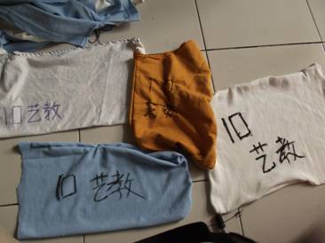 同学们无私的献出了自己不穿的衣服,展示了难得一见的针线活功夫。虽然布袋的形状千奇百怪,可看着自己一针一线缝出的布袋,同学们都十分兴奋。