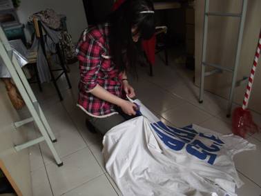 2011年4月10日下午,为了保障同学们表演课的安全,做到放心用道具,我系10级艺术教育专业同学自发组织了缝沙袋活动。