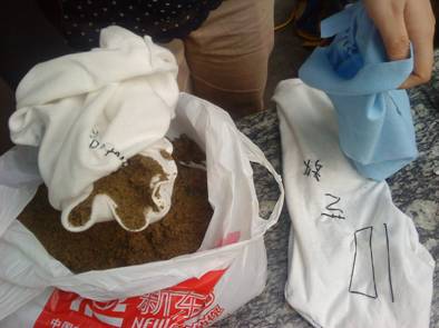 同学们无私的献出了自己不穿的衣服,展示了难得一见的针线活功夫。虽然布袋的形状千奇百怪,可看着自己一针一线缝出的布袋,同学们都十分兴奋。