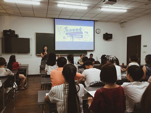 老师后,由各位16级新生进行简单的自我介绍。同学们用90后的语言方式,幽默风趣介绍自己的个性与特长,展现出新时代大学生朝气蓬勃的精神风貌。虽然每个人的自我介绍只有两三句话,但营造出的氛围使得每位新同学都迅速到融入到戏文系这一新的大家庭。