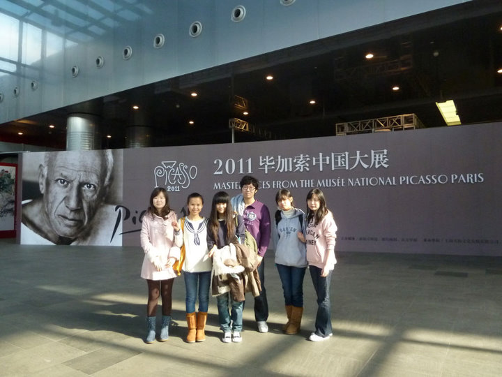11月27日,10戏文全体同学一早便集合起来,在周末清晨的悠闲与清爽中,热热闹闹地前往世博中国馆,参观《毕加索2011中国大展》。一路上大家银铃般的欢笑声透露出青春的活力,明媚晴朗的天气也与大家的心情十分默契。