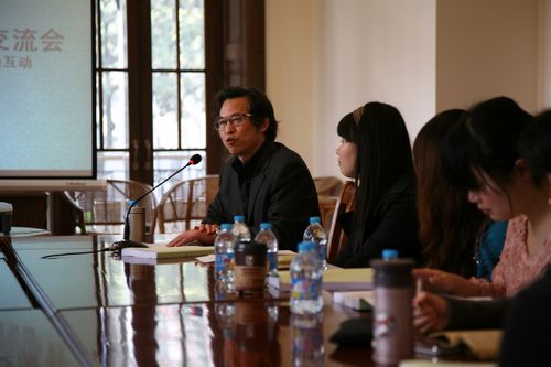 下午13:30,创作交流会在紫藤庐举行,各校优秀习作被选派进行成果展示。上戏09戏文聂成帅同学的小说改编剧本《生死桥》被搬上舞台,浓郁的沪上风情和细腻的人物刻画让观者如身临三十年代的上海滩。一同登台的还有上戏10戏文胡心言同学的独幕剧命题作业《道是无晴却有晴》,力图以一位老人的视角表现现代人的精神困境,同样赢得了掌声。接着,南大汉语言文学专业的徐谊同学带来了原创散文《流年若水》,独到的戏曲情怀在她深情诵读中优美流泻,字字珠玑。南大戏文专业带来多幕剧《婚礼》的剧本朗读片段,剧本以其莎式的悲剧感震慑人心,显得底蕴不凡。复旦中文系的同学们则独辟他径,《未央诀》、《静夜》、《落雨的舞台》……一首首诗歌浸润着古典诗词的文气和空灵的古今情思,颇留余味。接下来的交流环节,各校参展作品作者依次上台,阐述创作思路,接受提问。剧本《婚礼》的作者张玥珊同学还拿出了自己写作课的课堂笔记,严谨认真的专业态度让人感动。