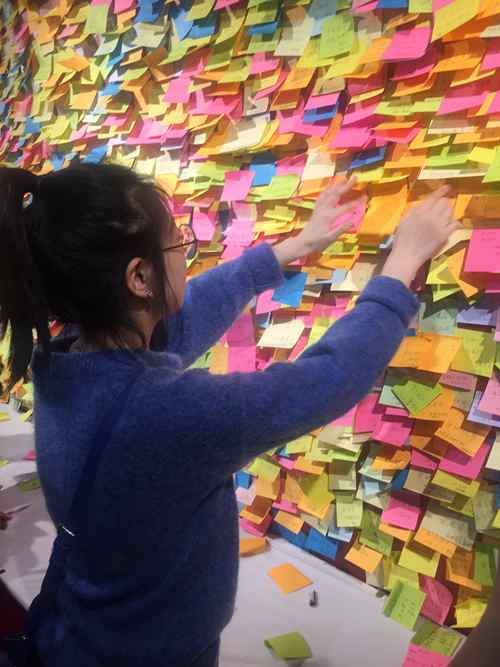 展览的最后,有一面贴满留言的墙壁,同学们也纷纷提笔写下参展心得。“不忘初心、牢记使命”、“星星之火,可以燎原”这些在展板上看到或是在讲解里听到的话,已经深深印刻在了每一位同学的心里。