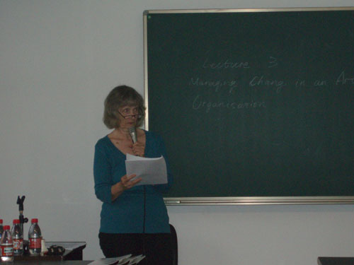 第二天和第三天的讲座,Sue Storr同样给戏文系的同学准备了精彩纷呈的内容,同学们都在讲座结束后争相提问。在Lecture3中,Sue谈了艺术组织的管理和变化,她说道:“当我第一次来上戏的时候,是在1998年。我从外交人士那儿了解到了开云足球首页官网下载。现在每个国家都能很容易地知道上戏正在做的事,并反映了中国将把重点放在戏剧和电影商,这是很大的变化。”