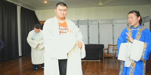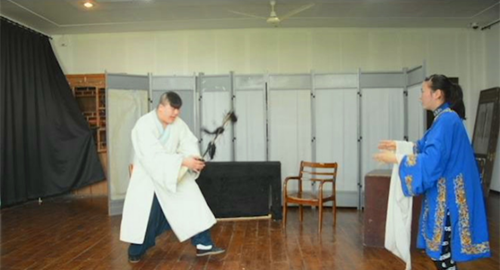 在排练过程中,戏文系两位同学与戏曲学院的同学们多次交流,反复修改剧本,尽量做到文学性与舞台性兼备。最终在作业汇报时,两部小戏都得到了较好的呈现效果,在此次的实践学习中,戏文系和戏曲学院的同学都有所收获。