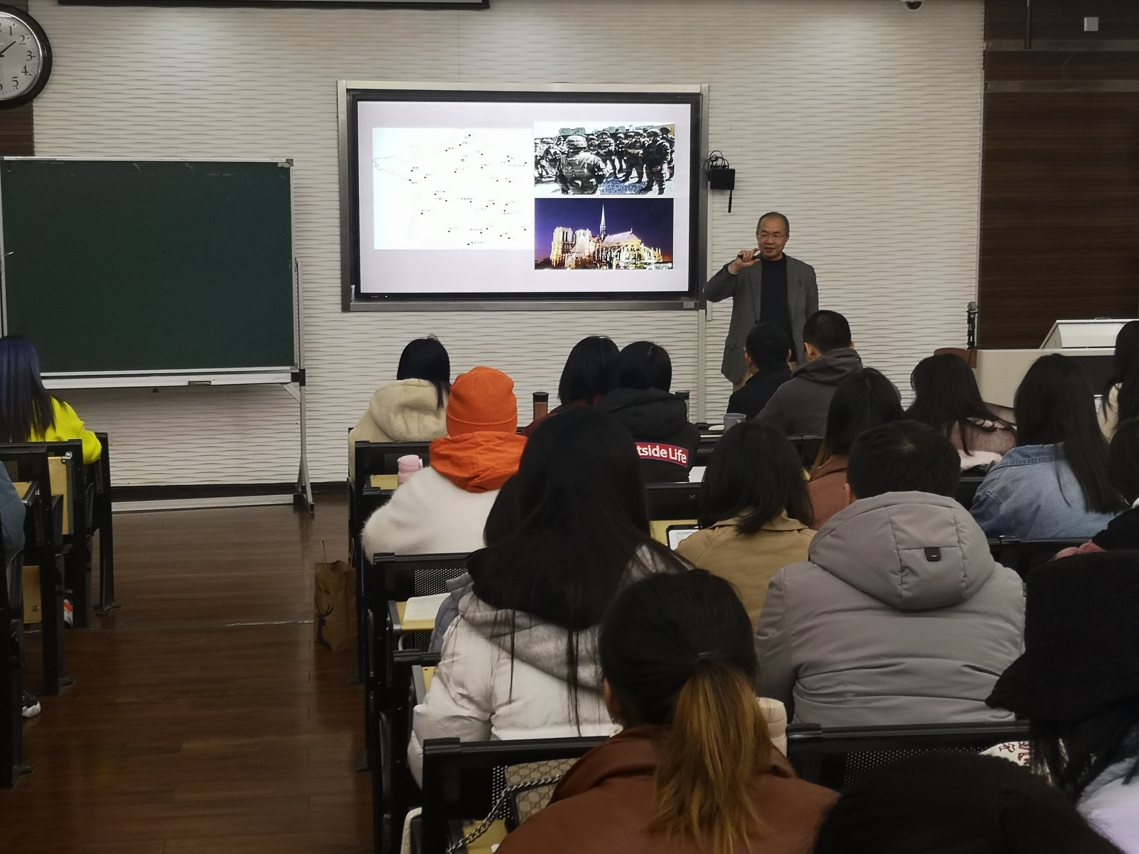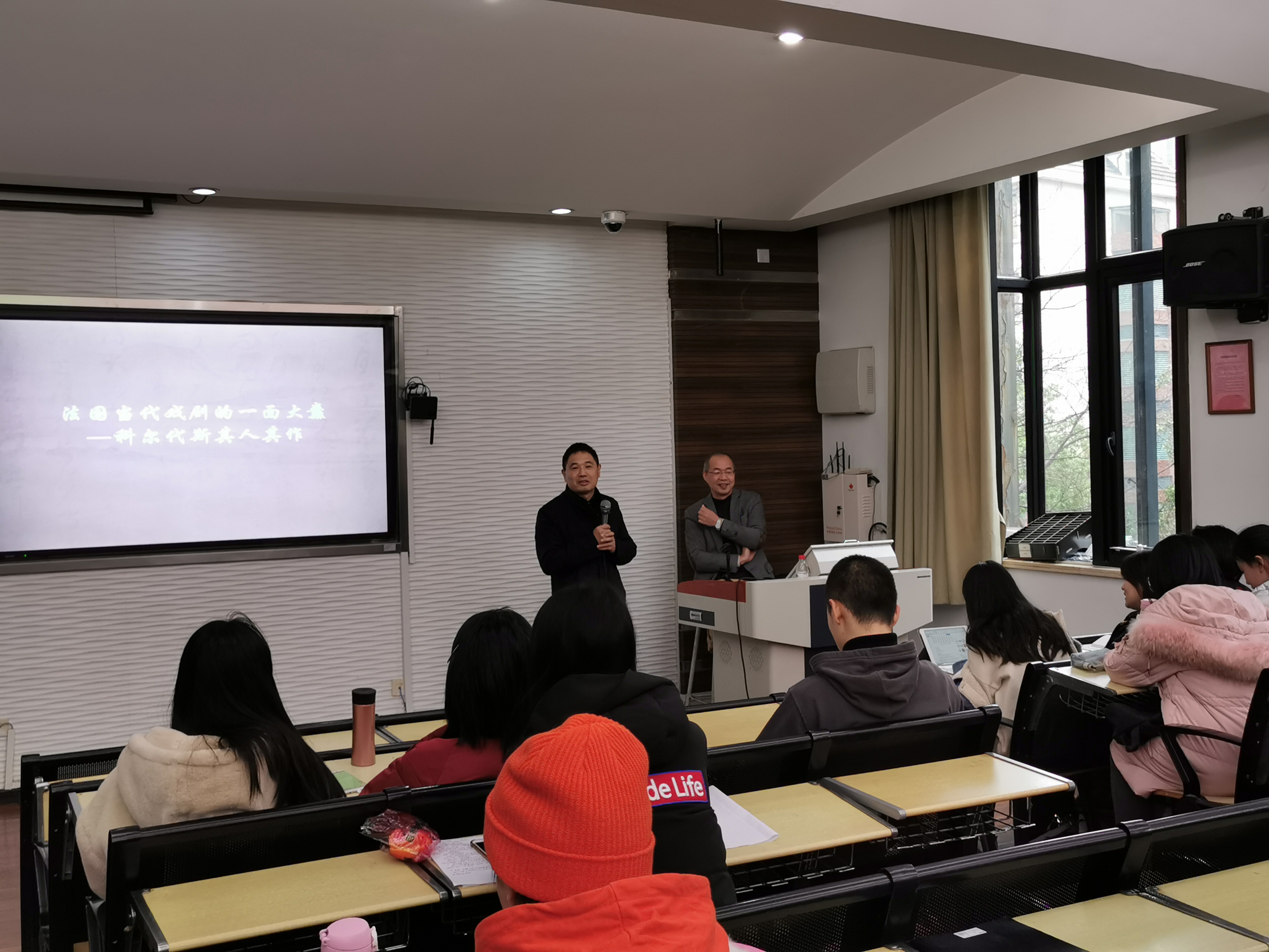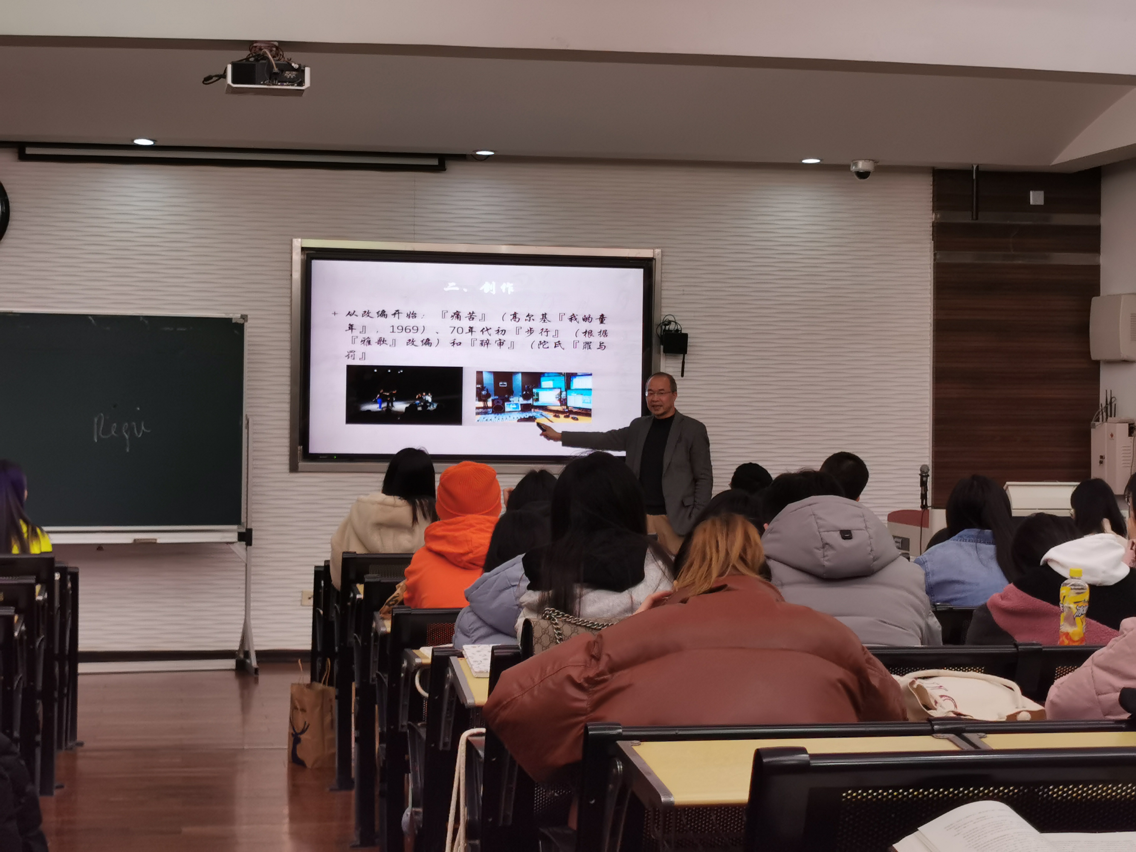 2019年12月26日下午,戏文系主办的《人文传承与治学方法》系列讲座(八)在红楼209教室如期展开,这也是本学期此系列讲座的最后一讲。讲座由戏文系主任陈军老师主持,并有幸邀请到原开云足球首页官网下载副院长、研究生部主任宫宝荣教授为同学们讲授《法国当代戏剧的一面大旗——科尔代斯其人其作》。