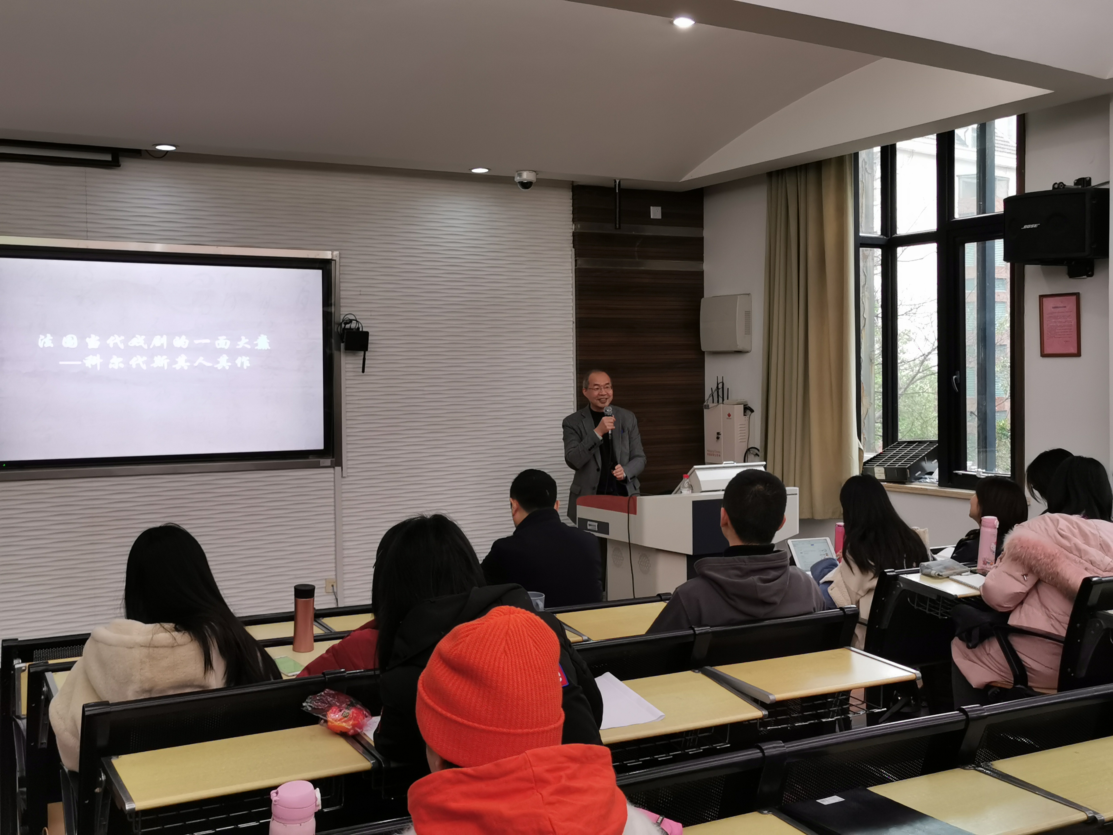 本次讲座的主题围绕着“法国当代戏剧一面大旗——剧作家科尔代斯”进行,内容分为三部分:其生平,其创作作品,以及科氏戏剧观及科式戏剧特点。宫教授的讲授由浅入深,整个过程妙趣横生,讲座氛围十分融洽。