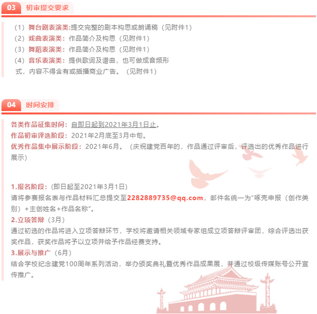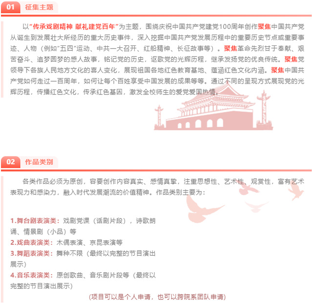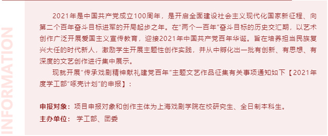 “传承戏剧精神 献礼建党百年”主题文艺作品啄壳计划(表演类)征集通知