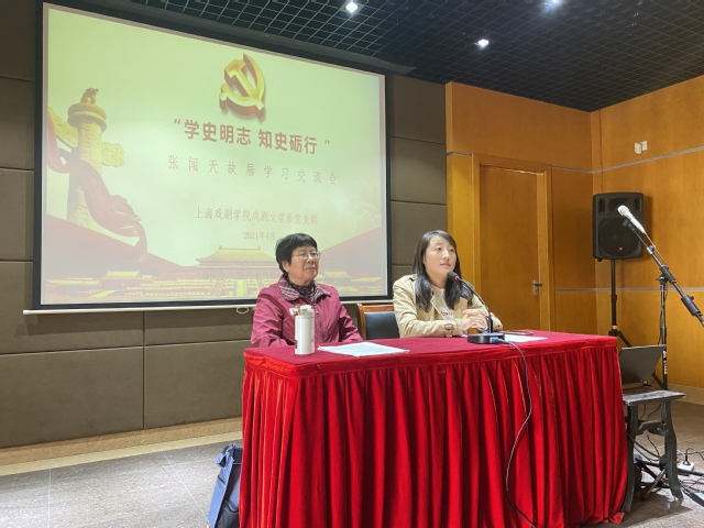 最后,戏文系党支部书记张璟老师对本次活动做了精炼总结。她谈到张闻天同志身上的高风亮节值得我们学习。戏文系党支部正在创作张闻天青年时代的剧本,围绕青年张闻天对真理与信仰的追寻展开,希望以年轻人的视角、理念、方法去接近革命先行者,为中国共产党中国共产党建党一百周年献礼。