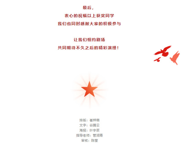 与此同时,戏文系学生会公众号也将在后期推文中为大家搭建宣传推广的平台,助力建组工作。