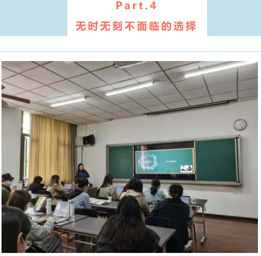 张飞飞师姐在讲说中提到,她认为考研选择最主要的几点考量因素:MA还是MFA、资深兴趣、职业规划以及专业素养。选择一个适合自己的专业非常重要,必须权衡利弊。除此之外,张飞飞师姐还教在场同学们如何在备考期间选择最优质最有效的参考书和学习视频,有效选择是提高效率的不二途径。