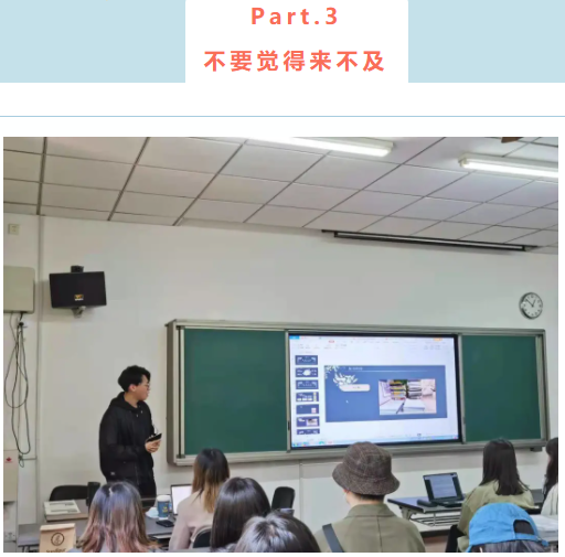 在大约一个半小时的经验分享会里,开讲人们把用心准备的东西拿出来和在场同学分享交流,在场同学们积极提问、记录。