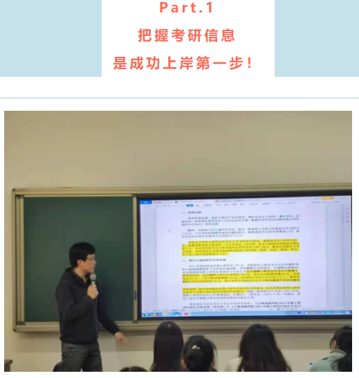 温涛老师向大家具体介绍了近几年的考情及考研的要求,讲解了考研前需了解的事项:譬如全日制与非全日制硕士研究生的区别、专业与方向的选择需慎重、定向与非定向在就业方面的区别等等。总之,考研成功来之不易,在努力准备之前,同学们一定要仔细阅读各校招生简章,选择适合自己的方向。