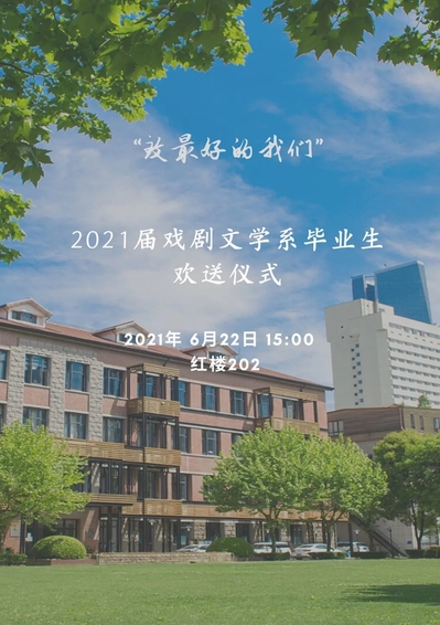 2021年6月22日下午, 2021 届戏剧文学系毕业生欢送仪式于红楼202教室顺利举行。本次欢送仪式以“致最好的我们”为主题,祝福各位毕业生未来可期。